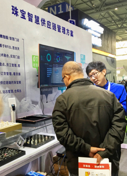 此次CHINA SHOP 2017首次展示了RFID珠宝供应链完整的体验方案,现场展示了RFID珠宝盘点以及智能看货盘。利用RFID进行珠宝盘点,其效率是人工盘点的25-30倍,同时减少人工盘点的误差!智能看货盘能够在消费者选购珠宝时,自动识别珠宝的RFID标签,实时全面展示珠宝相关信息,提升消费者的购物体验;不仅如此,智能看货盘还可以实现:商品分析、会员管理、员工管理